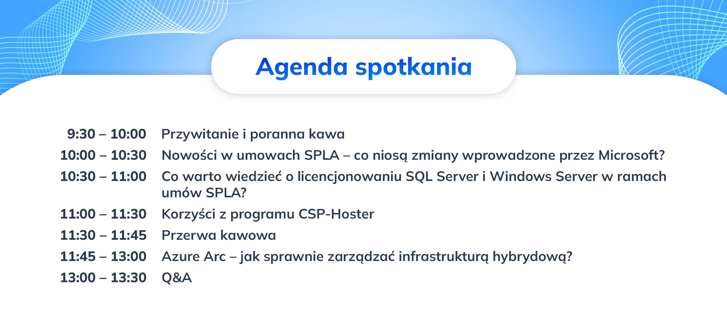 Podczas spotkania omówimy także scenariusze wykorzystania licencji Windows Server i SQL Server oraz w przystępny i merytoryczny sposób przedstawimy korzyści z programu CSP-Hoster. Ponadto podpowiemy, jak efektywnie zarządzać infrastrukturą hybrydową przy pomocy Azure Arc.