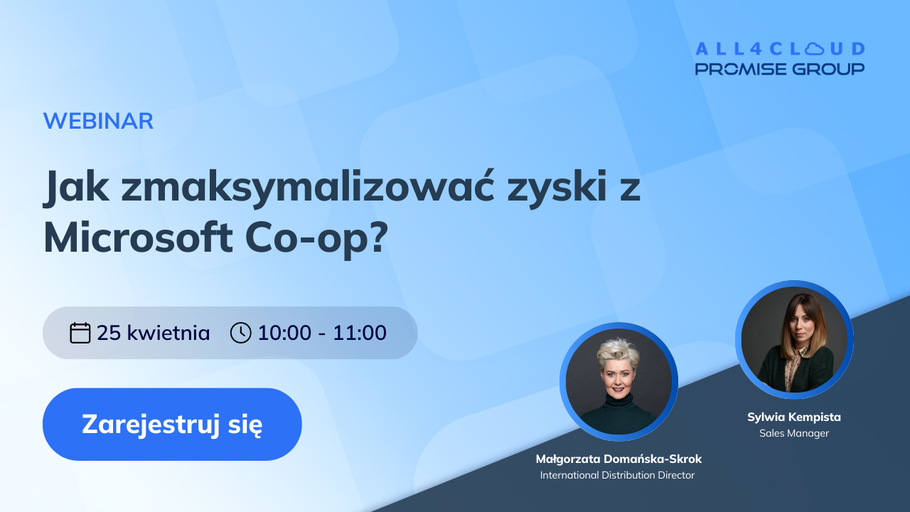 Zapraszamy na wyjątkowy webinar poświęcony programowi Microsoft Cooperative Marketing Fund (Co-op) i korzyściom, jakie oferuje Partnerom.