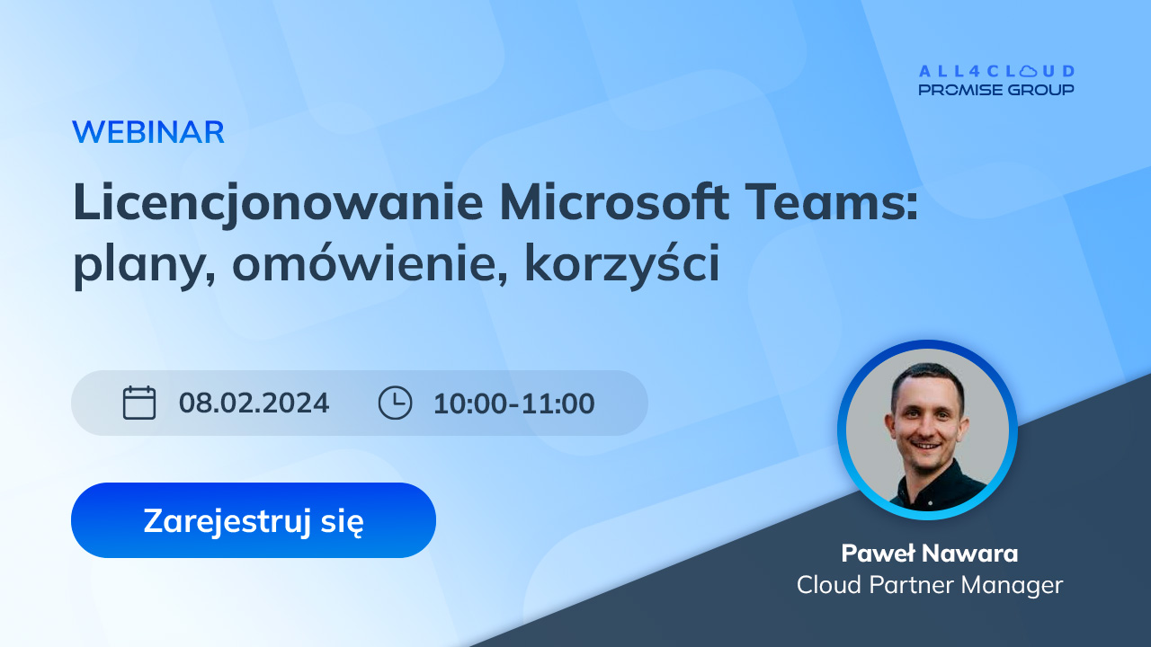 Nasz ekspert przeprowadzi Cię przez funkcje i zalety każdego planu, pomagając w podjęciu świadomej decyzji, który plan jest odpowiedni dla Twoich klientów. Omówimy także ostatnie zmiany w zakresie licencjonowania MS Teams dla klientów z EOG (Europejskiego Obszaru Gospodarczego).